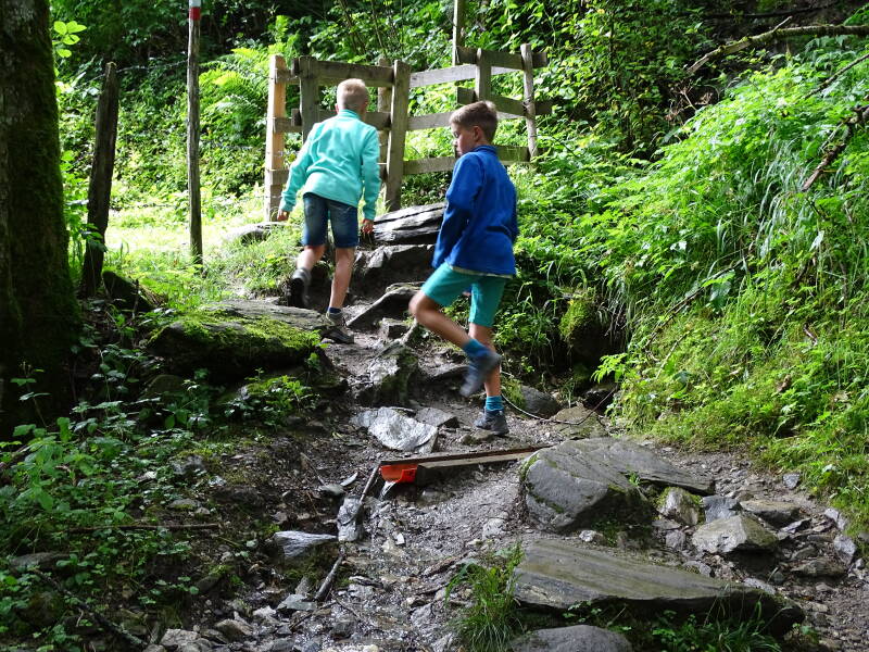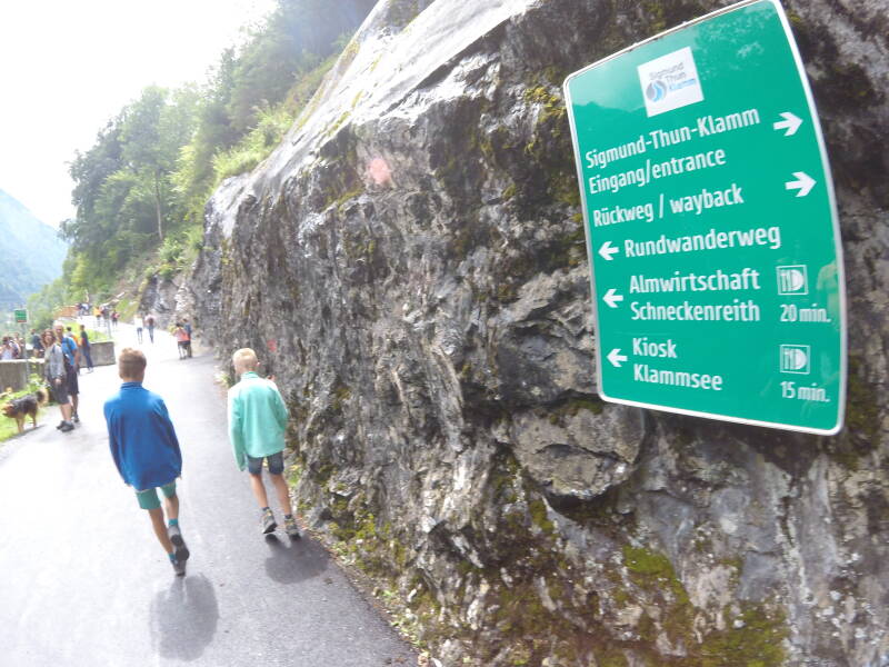 Er staat een pak volk te wachten om ingang te betalen, maar met onze 'Sommer Card' lopen we gewoon naar het ingangspoortje en gaan richting de Klamm !