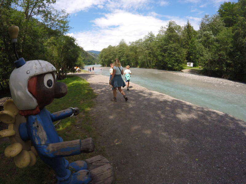 Deze meandert zich een weg naar de 'Klammsee', en tot onze verbazing zien we dat er overal aan de oevers bankjes staan om te vertoeven, en dat verschillende mensen zich vermaken in het - trouwens ijskoude - water van de rivier.