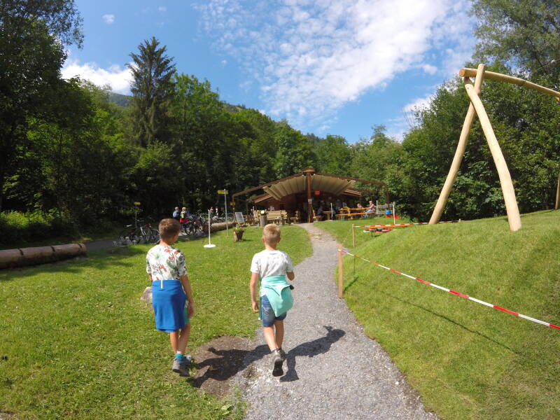 Vanhieruit kan je via een kleine lus terug naar de ingang, maar wij gaan een kleine wandeling doen naar een iets hoger gelegen Alm om daar al onze eerste punten te scoren voor onze wandelspeldjes, en nadien terug te keren via de 'Klammsee'.