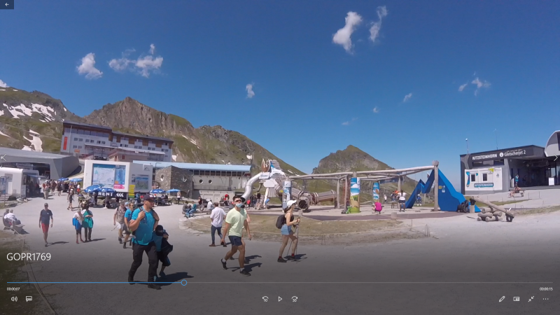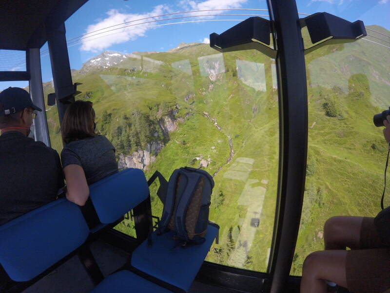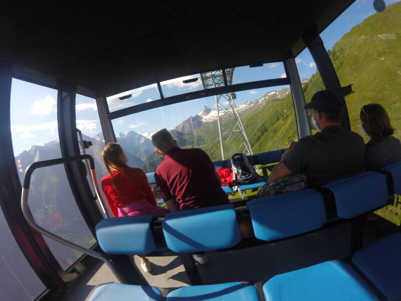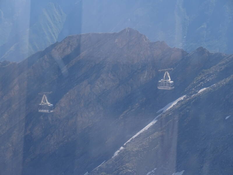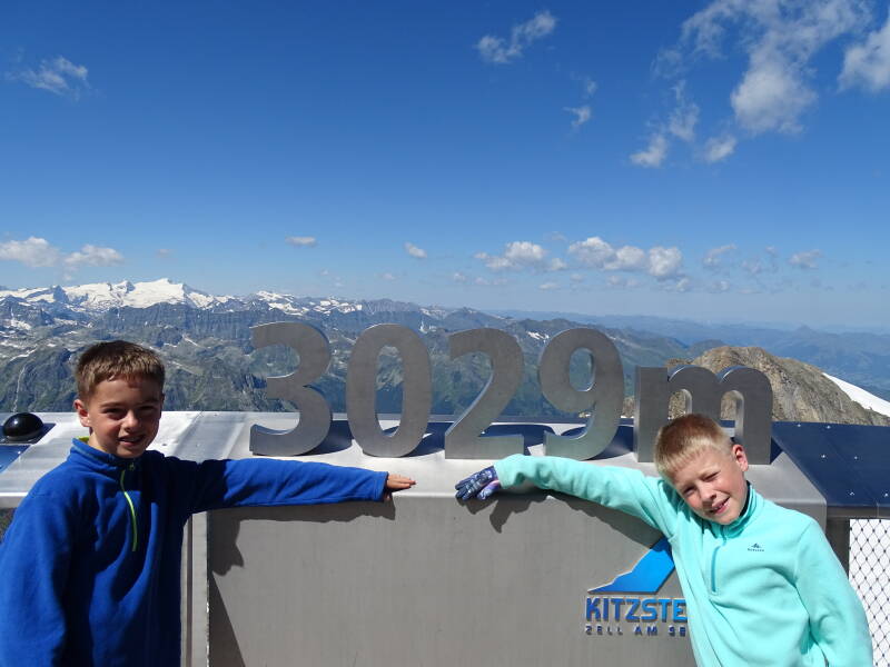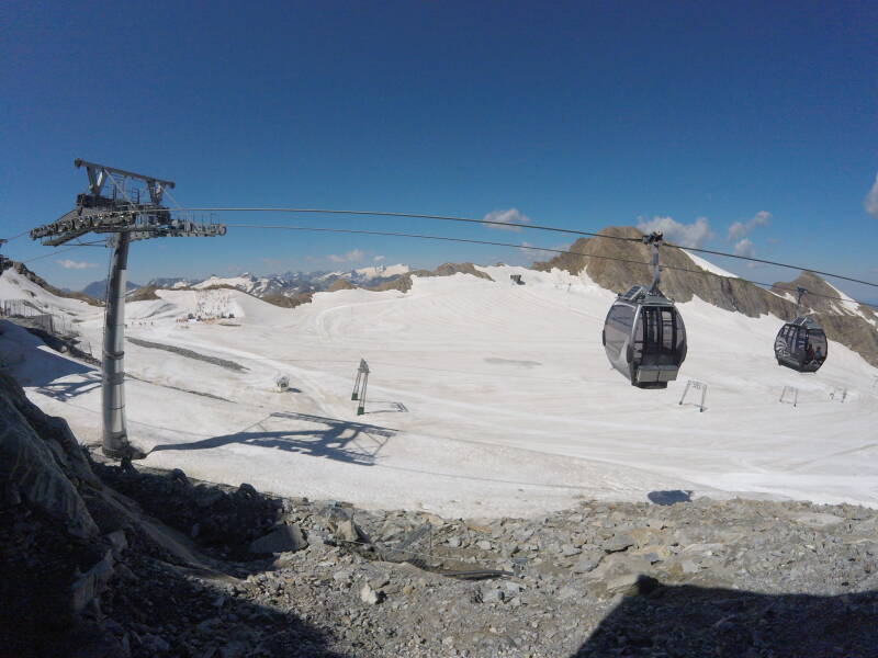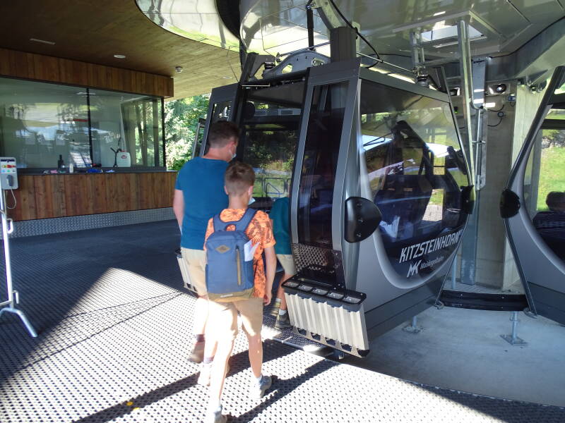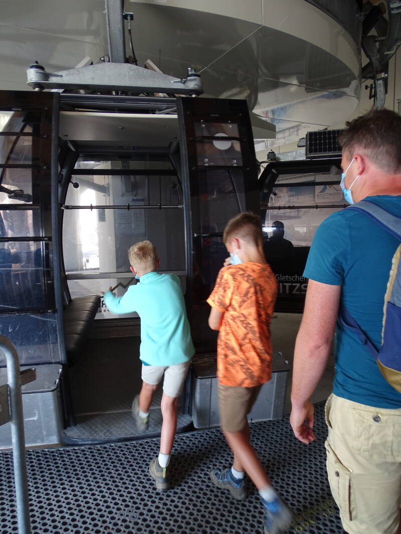 De 'Gipfeljet' gaat ook op en naar het bergstation 'Gipfelwelt 3000', maar door de corona nemen we deze grote kabelbaan niet, waar iedereen op elkaar gepakt staat ...