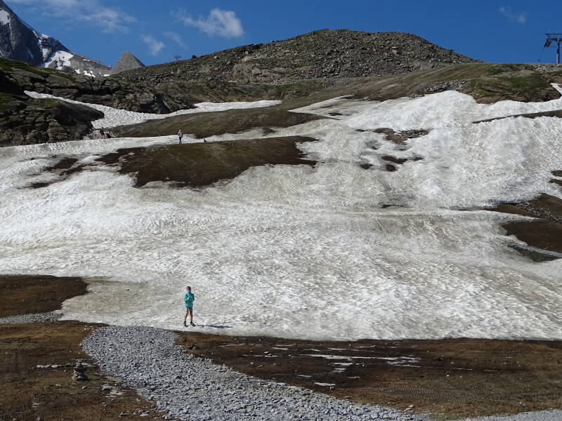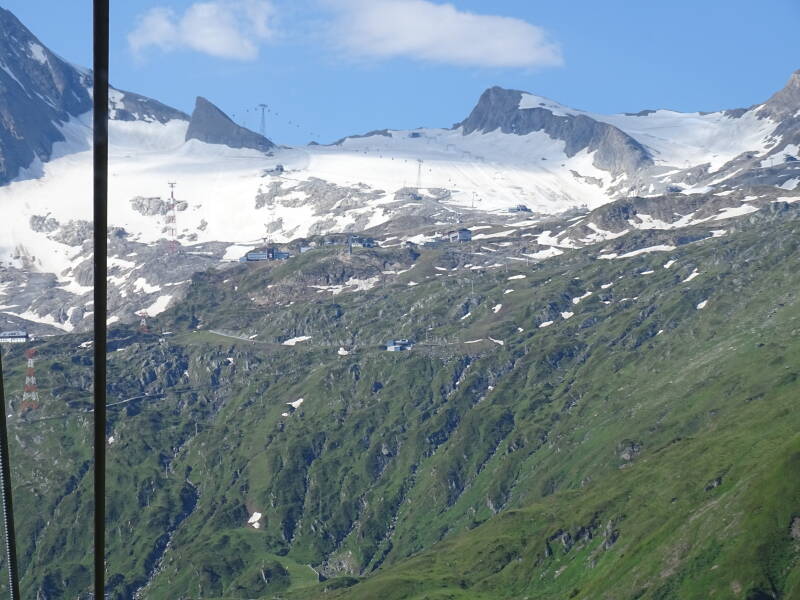 Bij de 'Alpincenter', vanwaaruit de laatste kabelbanen - de gletscherjet 3 & 4 vertrekken - ligt er al sneeuw !