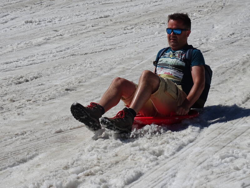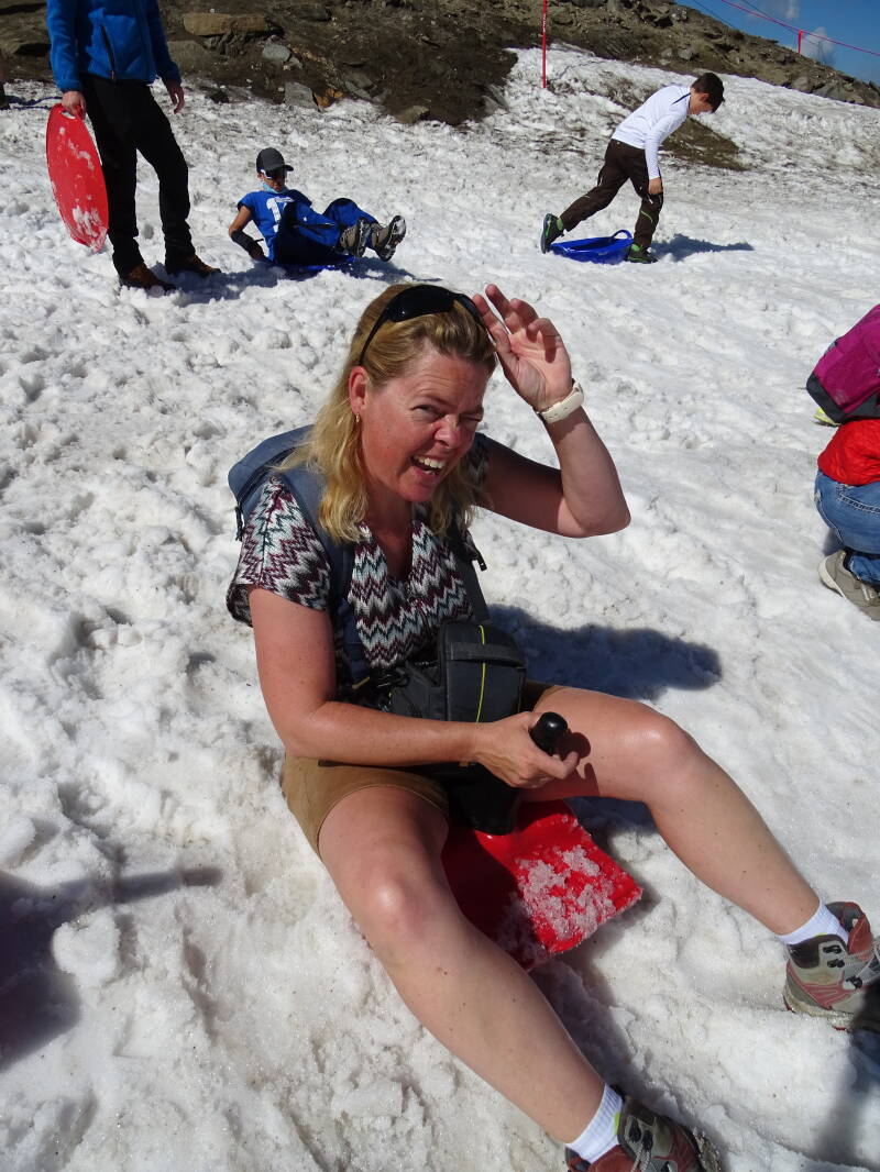 Omdat we zo vroeg zijn vertrokken is er nog bijna geen volk. We kunnen dus sleeën naar hartenlust !!