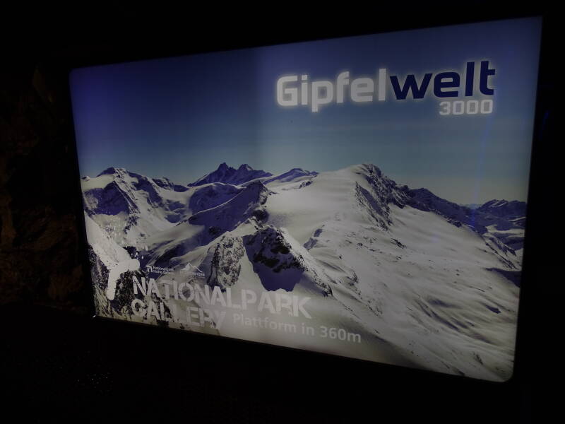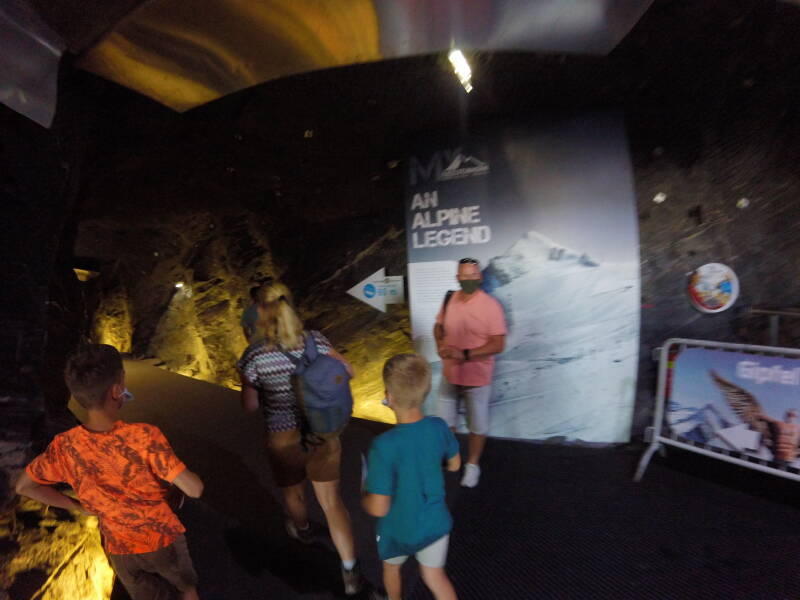 We gaan vervolgens de tunnel door, wat eigenlijk een informatieve wandeling is die uitlegt hoe de Gipfelwelt is ontstaan, alsook informatie over de gletscher en de berg zelf