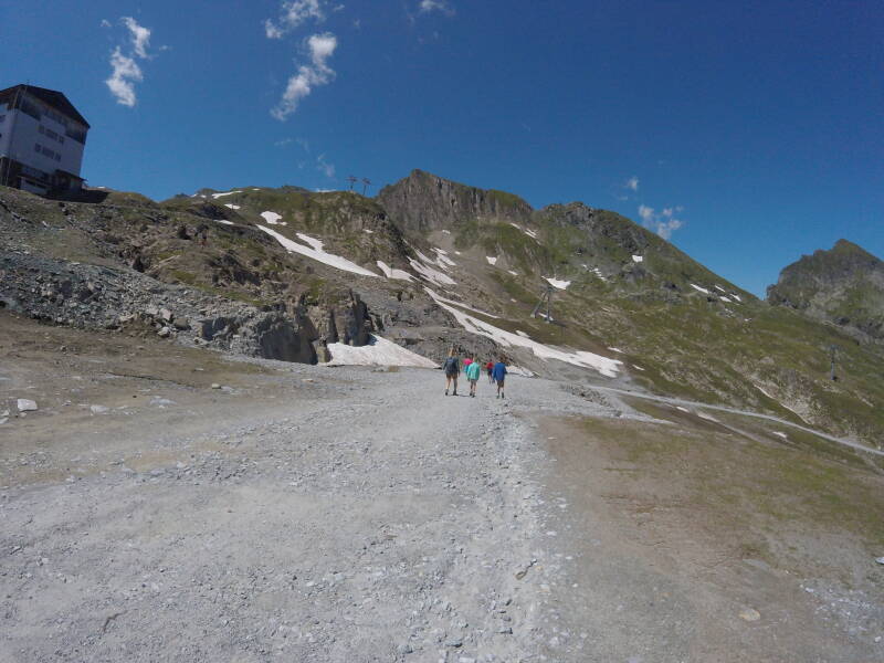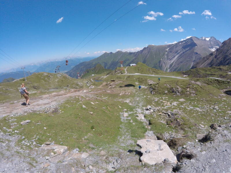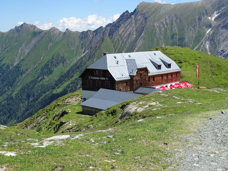 Ook hier is het - in tegenstelling tot eerder deze morgen - zeer druk. Verder naar beneden zien we ons volgende doel liggen : de 'Krefelder Hütte'.