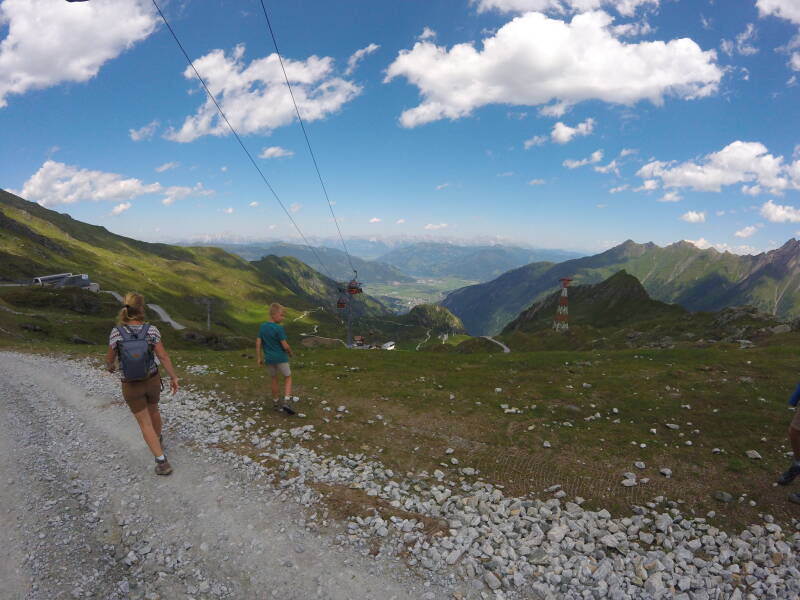 Vooreerst nemen we de Maiskogellift (2 stukken), waarna we de K-3 Connection nemen richting de gletscher. Vandaar moeten we nog de gletscherjet 2, 3 en 4 nemen. De grote kabelbaan 'Gipfeljet' laten we aan ons voorbijgaan gezien de coronatoestand : we willen niet met veel mensen tesamen in een 'bakje' zitten.