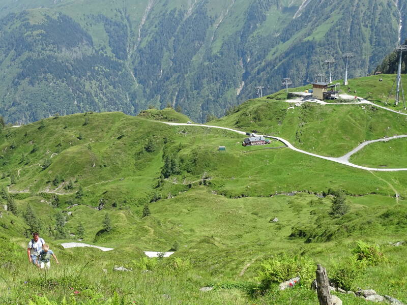 Na een kleine twintig minuten komen we aan op het middenstation 'Langwied'. Na onze boterhammen te hebben opgegeten dalen we af richting ons doel : de 'Salzburgerhutte'.