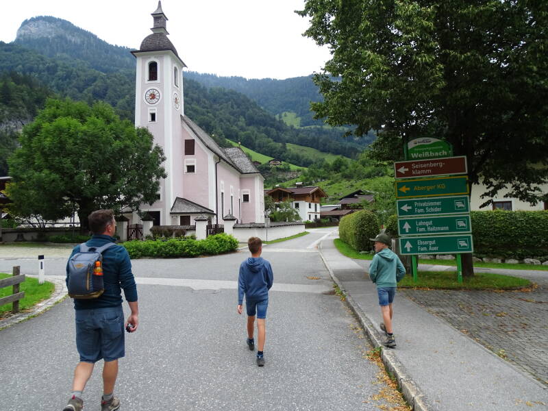 Na een kleine twintig minuten wordt het dal iets breder en komen we bij een klein dorpje : 'WeiBbach bei Lofer'. Hier is de 'Seisenbergklamm' gelegen.