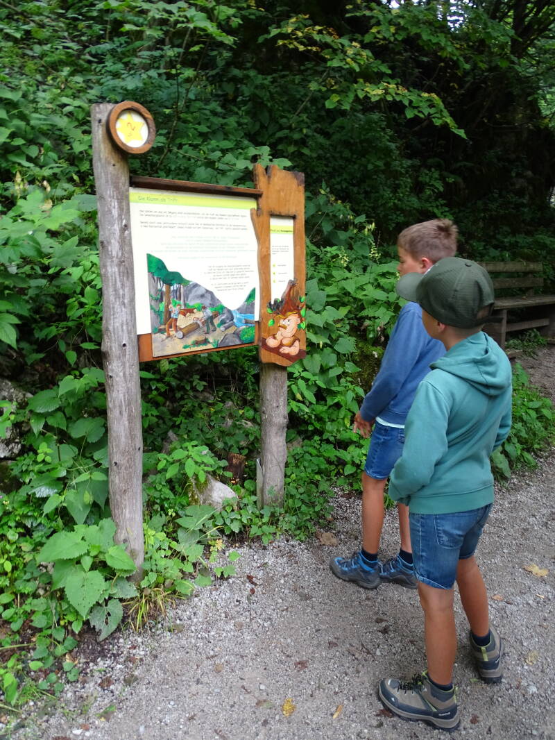 Zwaar wandelen zit er niet meer in, maar we gebruiken nog een laatste keer onze 'Kaprun Sommer Card', namelijk om een stuk verder de 'Seisenbergklamm' te bezoeken. Hierbij rijden we niet terug langs Kitzbuhel - Kufstein - München, maar rijden we door Zell am See naar Saalfelden. Daar slaan we westwaarts, en rijden we tussen de uitlopers van het 'Steinernes Meer' aan de noordkant en de Leoganger Steinberge aan de zuidkant. We rijden een nauw dal door met aan weerszijden machtige kalksteenbergen.