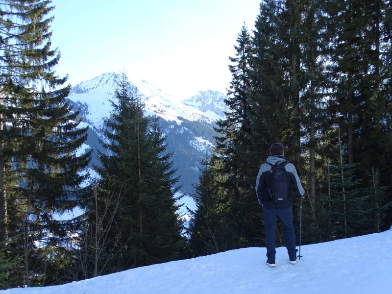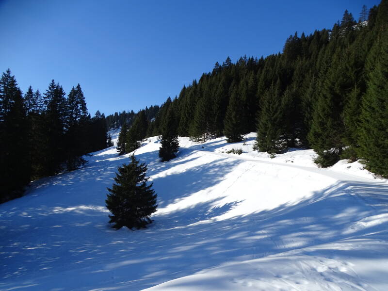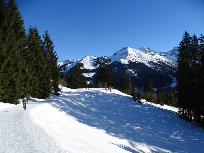 Eénmaal uit het bos kunnen we slechts sprakeloos de winterpracht van het Kleinwalsertal aanschouwen ...