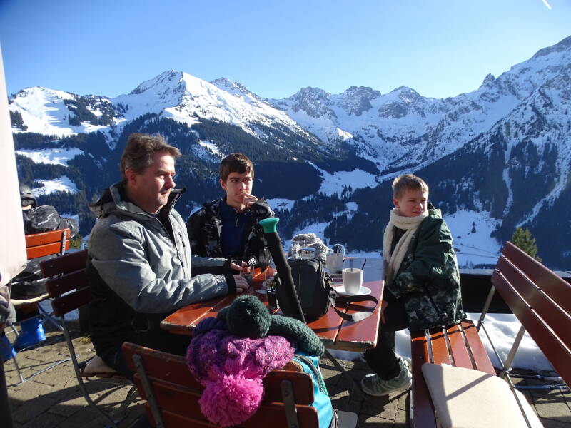 We komen heel snel aan bij het bergstation, waar we een mooi zicht hebben op de berg de 'Ifen'.