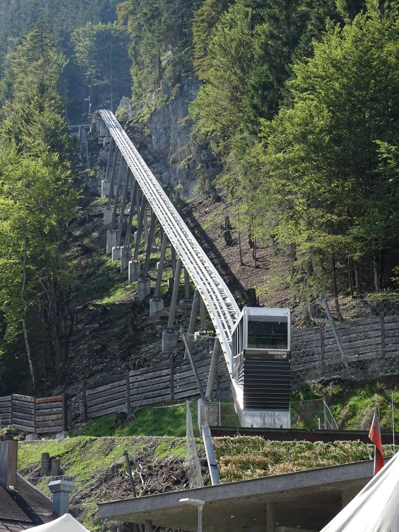 Er is nu ook een soort berglift die je naar boven brengt (hoef je niet zover te stappen naar de Highline 179). We zijn hier echter voor de ridderfeesten, dus laten we hangbrug voor wat hij is, iets wat Bjorn niet erg vindt ;)