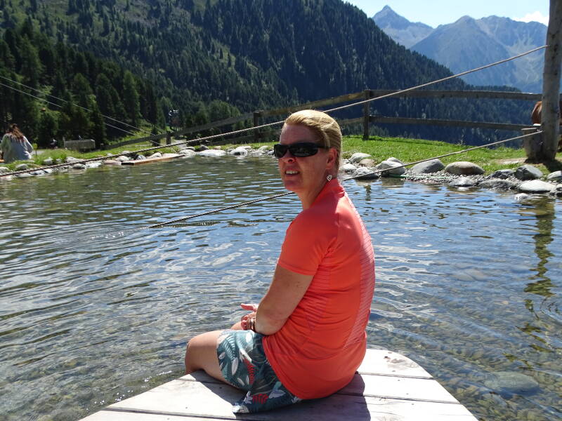 We nemen de kabelbaan terug naar beneden, waar we nabij ons huisje nog een klein zwemmeer hebben waar we uitrusten van de wandeling :)