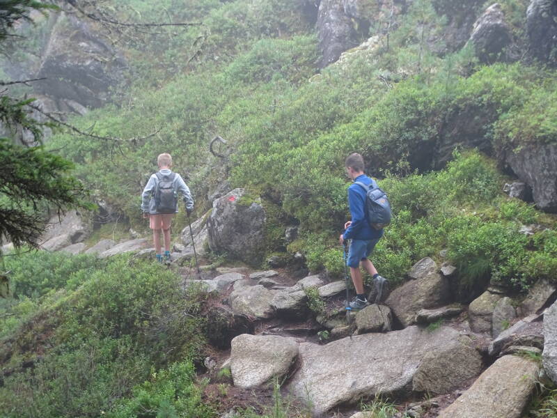 Het gaat goed omhoog, en we moeten klimmen en soms klauteren ...