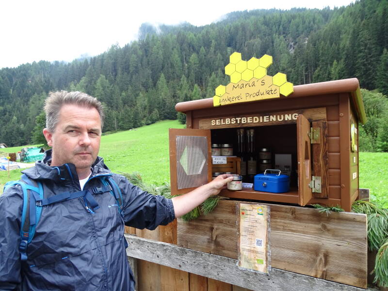 Daar eindigt onze flinke maar toch mooie wandeling. We kopen evenwel nog wat berghoning uit een 'selbstbediening' aldaar !