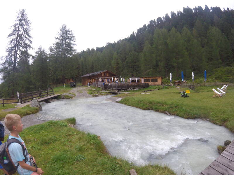 Dit is een heel mooie alm die ligt bij de reeds vernoemde slingerende bergrivier, waar je naast het water kan zitten ...