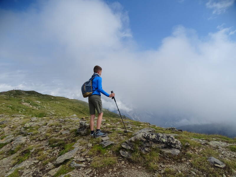 Het is nogal koud hierboven, dus we zetten de afdaling in richting de Kalbenalm.