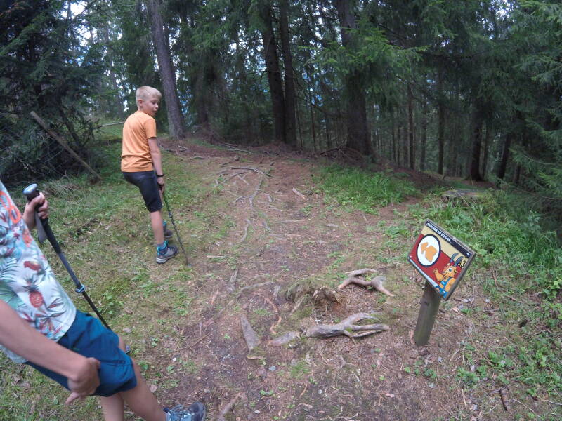 We passeren het jaustenstation langs rechts om eerst het 'Wildtierlehrpfad' te wandelen.