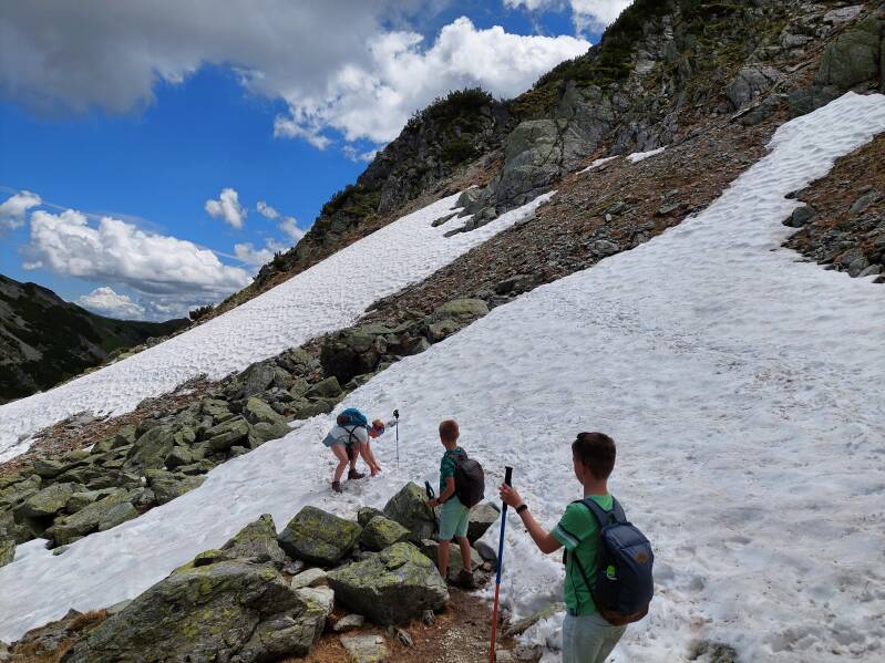 Bjorn was heel erg bang voor dit pad (hij had dit gezien in het stijgen) maar het valt reuze mee. Er blijken ook nog heel vele sneeuwvelden te liggen ...