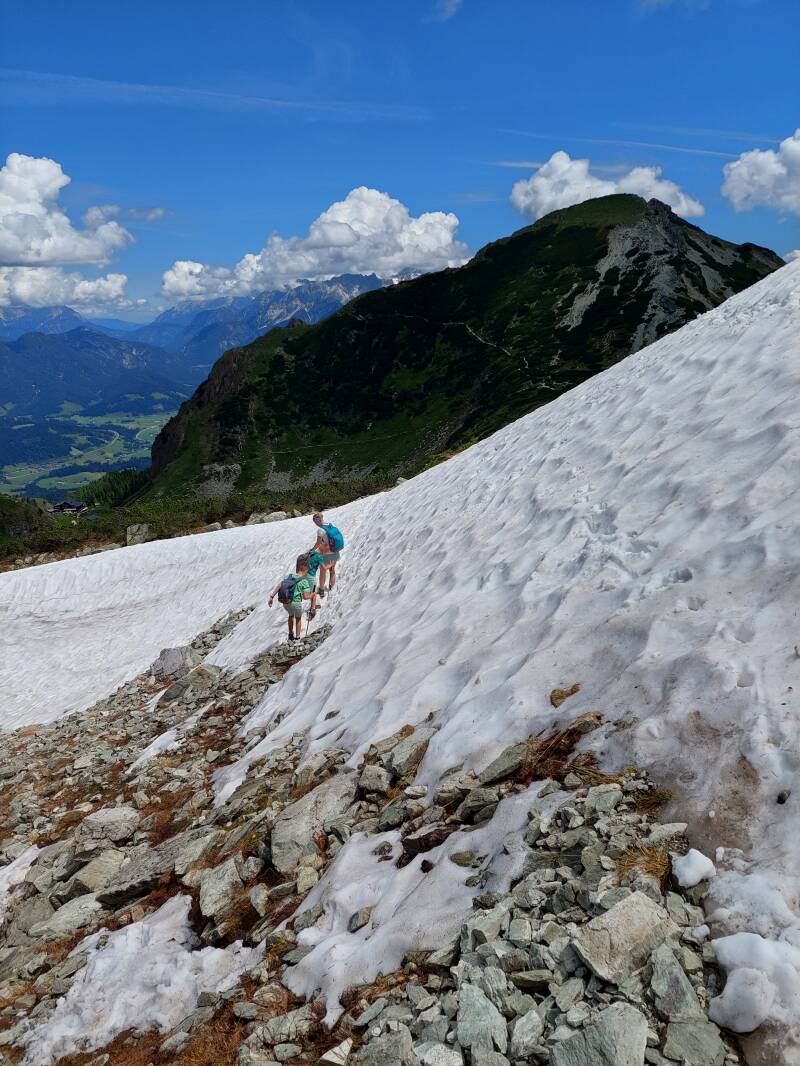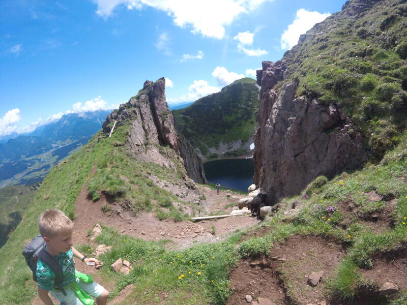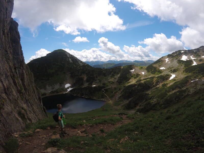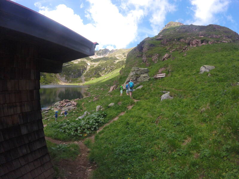 Even later zijn ook Ilona en de kinderen terug van de top, en dalen we af richting de 'Wildseelodersee'.