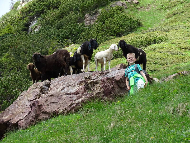 Veel tijd om te geniet is er niet, er moet geklommen worden. Even verder komen we opnieuw schapen tegen !