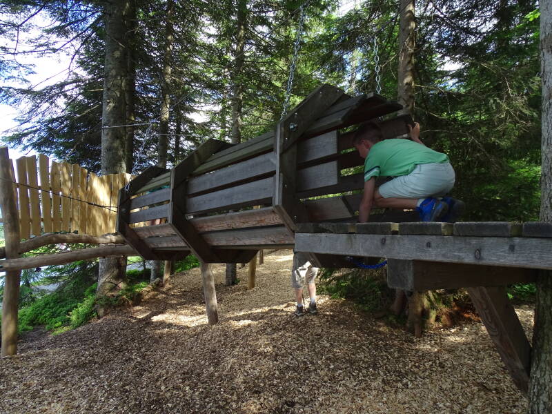 We stappen hierbij uit bij het middenstation, waar er een kleine beleveniswereld 'Timoks Wilde Welt' is waar we rusten, ontspannen en spelen !