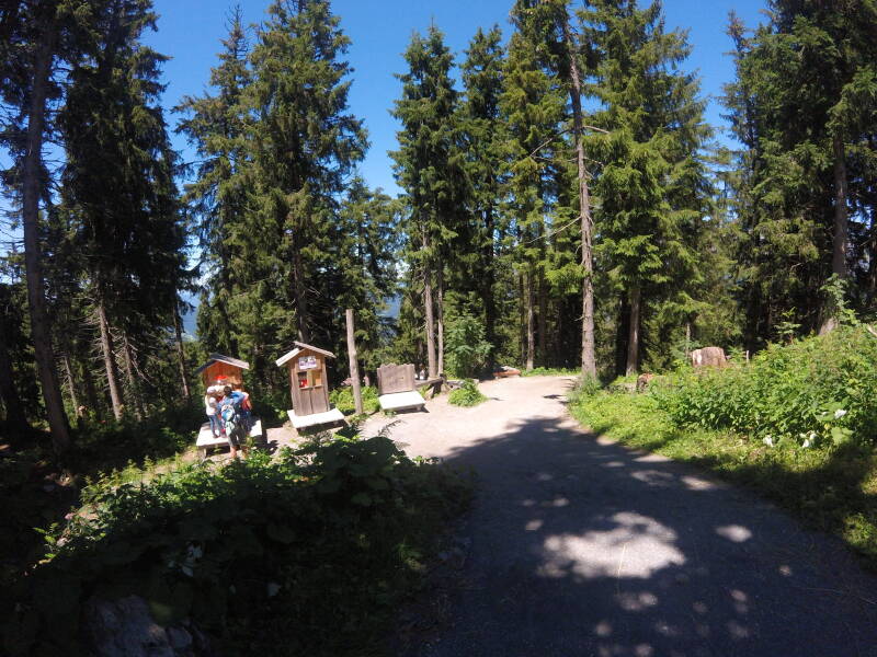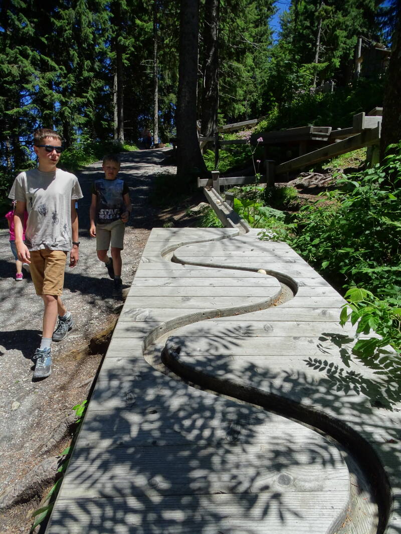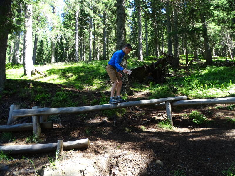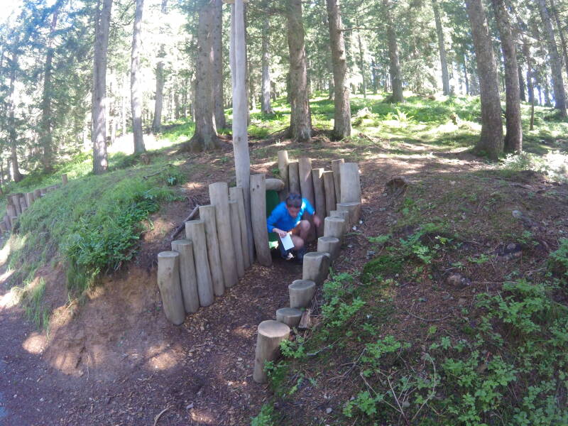 We zijn hier al vaker geweest (zie eerdere reizen Westendorf). 'Ellmi's Zauberwelt' is een beleveniswereld die een soort mini sprookjesbos is, met voor de kinderen een zoektocht die ze moeten doen en in het bos allerlei opdrachten moeten uitvoeren of voorwerpen vinden. Tristan en Odin kennen de 'Zauberwelt' ondertussen al vanbuiten :)