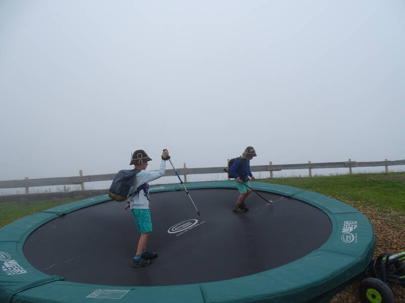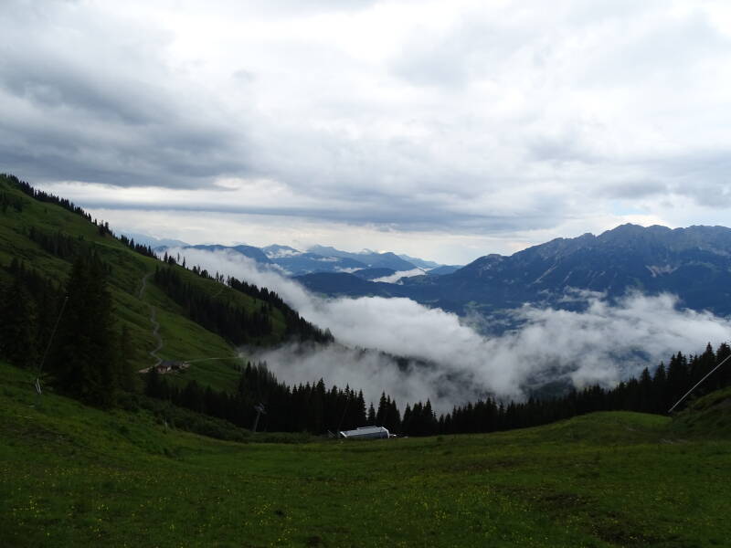 Eenmaal aangekomen bij Kaiserwelt is het weer ietsje beter. Na nog wat te hebben gespeeld gaan we naar beneden met de kabelbaan, en zit de wandeldag erop ...