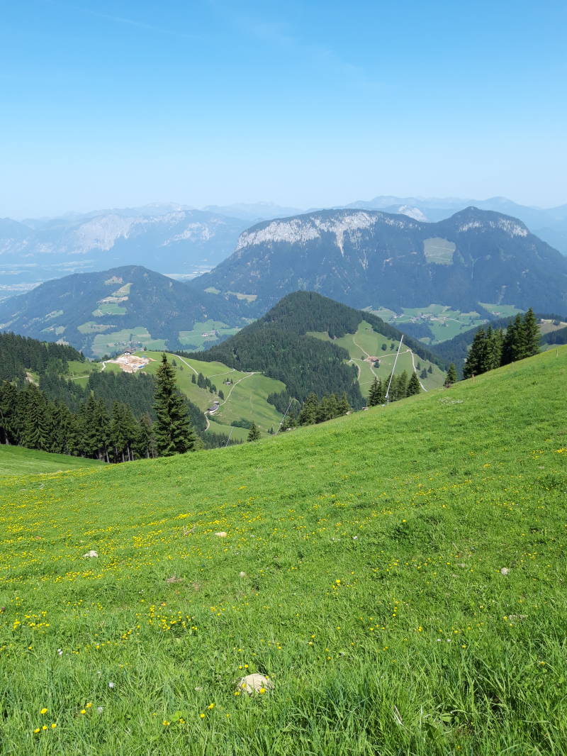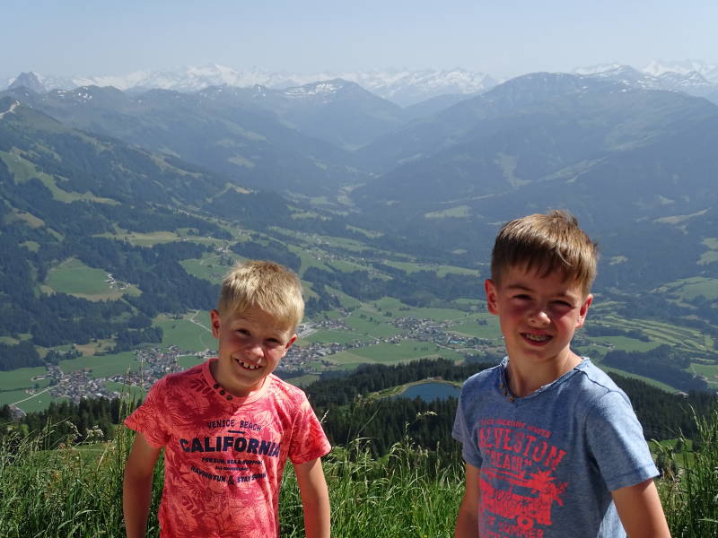 Zo komen we aan op de berg 'Hohe Salve'. Daar genieten we eerst van het uitzicht …