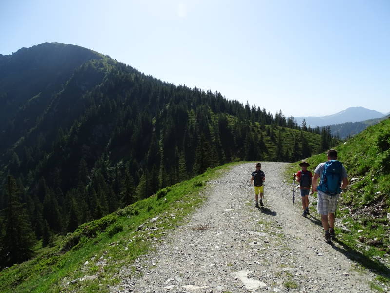 En na een verfrissing bij een waterbak terug langs de 'Einködlscharte', met de 'Fleiding' in zicht …