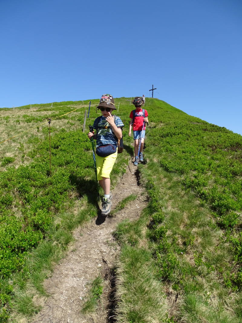 Nog eens wijzen naar de top van de 'Gampenkogel' waar we geweest zijn …
