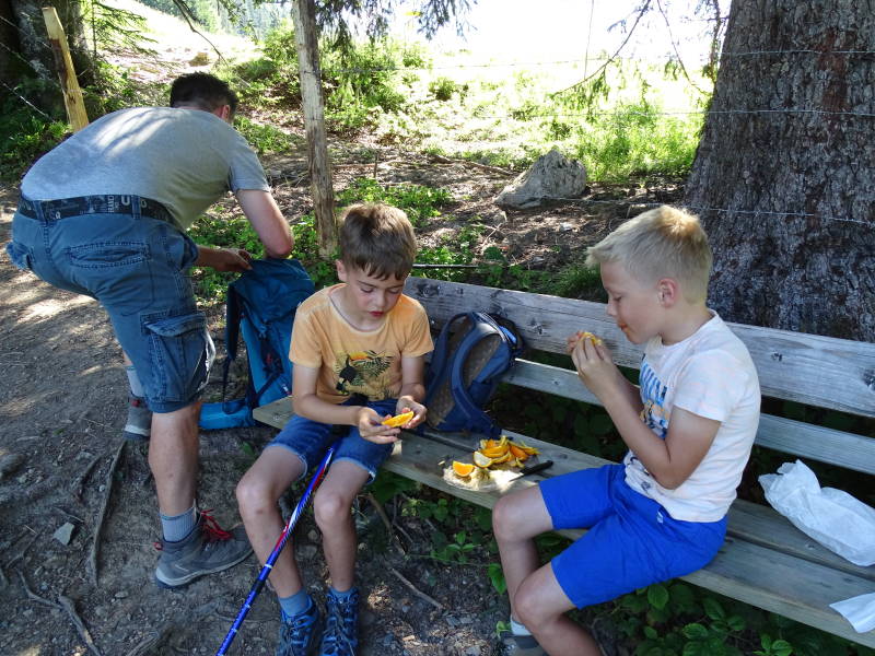 Na een klein uurtje rust (Bjorn en Ilona) en spelen (Tristan en Odin) gaan we weer verder. Na 15 minuutjes komen wij aan bij gasthof 'Bärnstatt' waar we deze ochtend zijn vertrokken. We halen er onze laatste stempel, en gaan via het kerkje terug naar onze auto. De laatste wandeling van de vakantie zit erop !