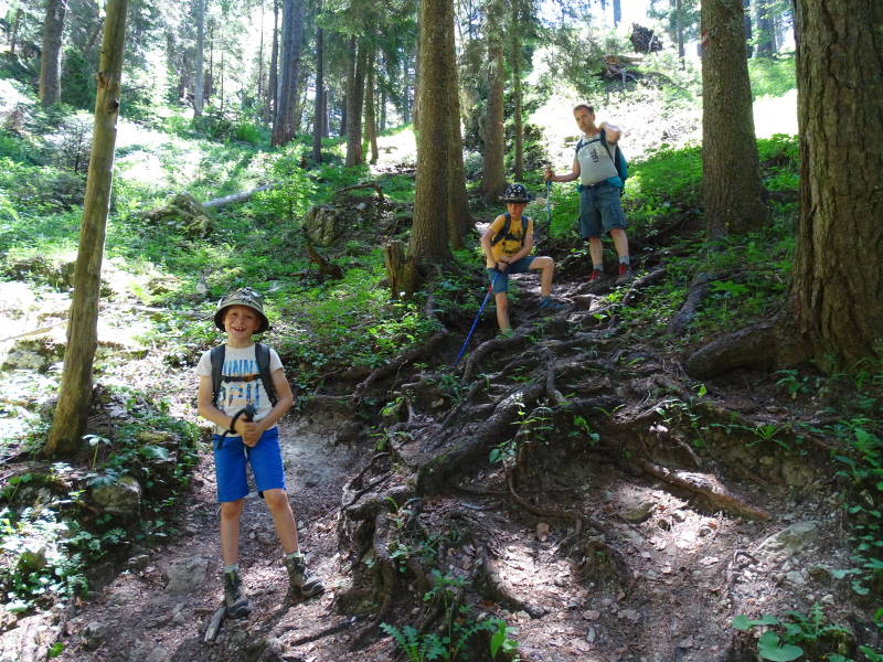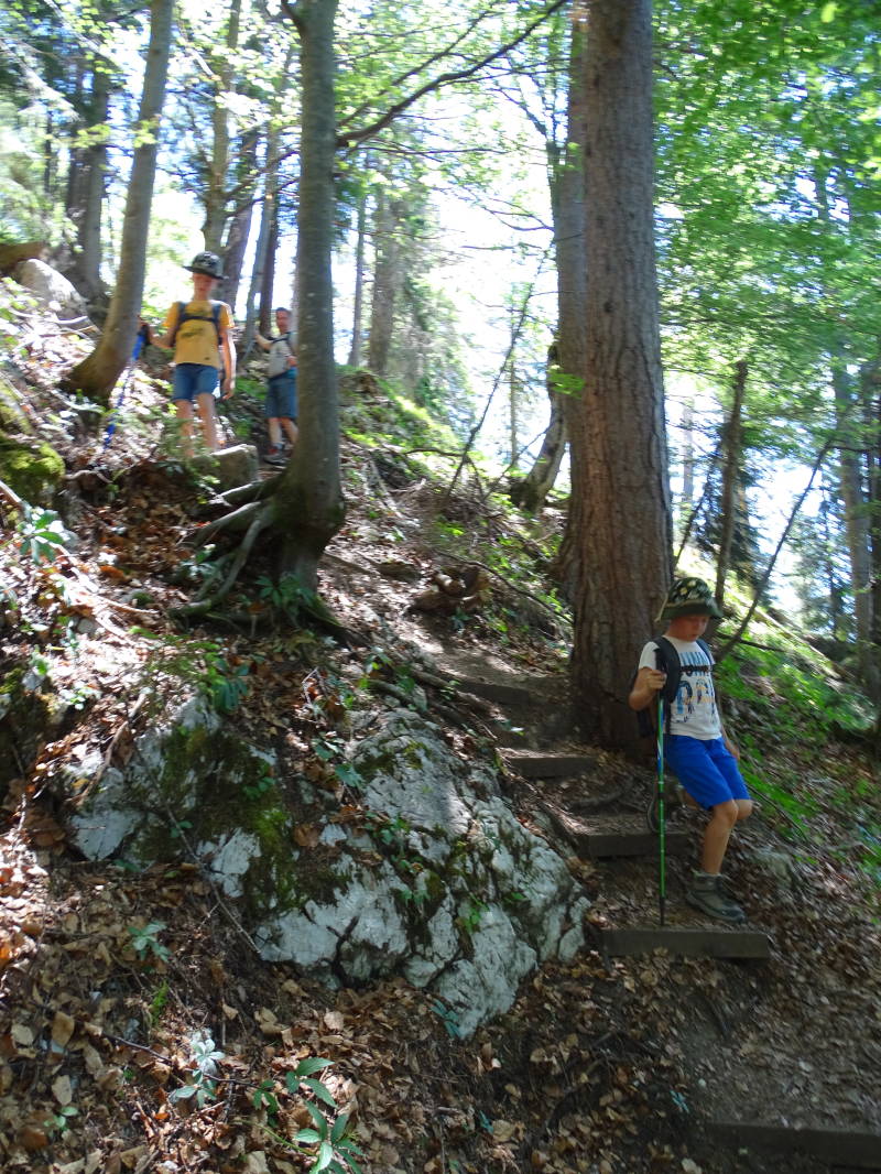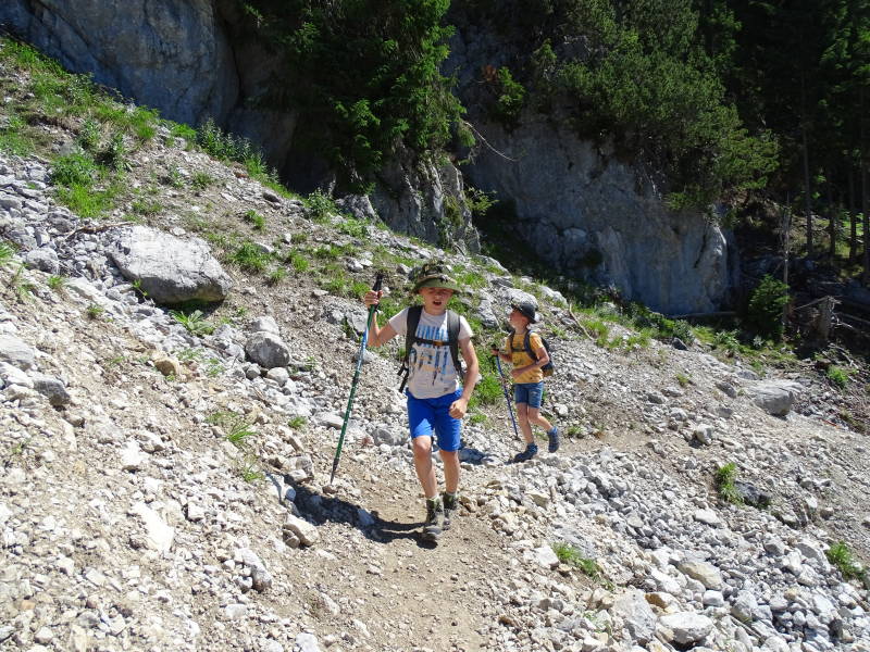 Hierna beginnen we aan de 'Jagersteig', een op-en-af pad boven de 'Hintersteiner See' maar juist onder de rotsen van de 'Wilder Kaiser'.
