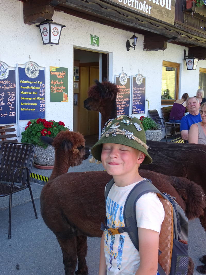 We halen ook een stempel bij Gasthof 'Goingstatt', waar er twee alpaca's op het terras rondlopen !