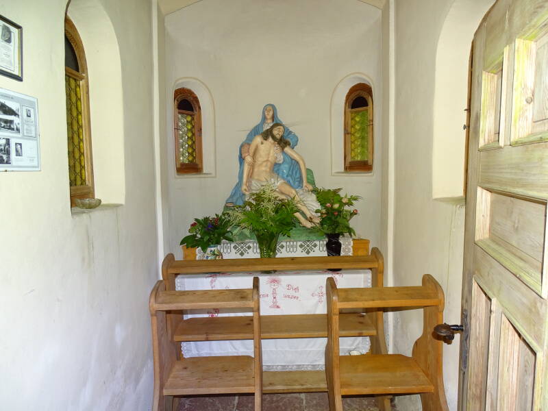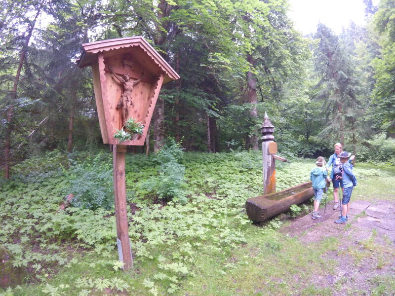We komen bij een kapelletje waar een bron is, de 'Theresienbrunnen' die sinds de 19e eeuw heilzaam water uit de grond laat opborrelen.