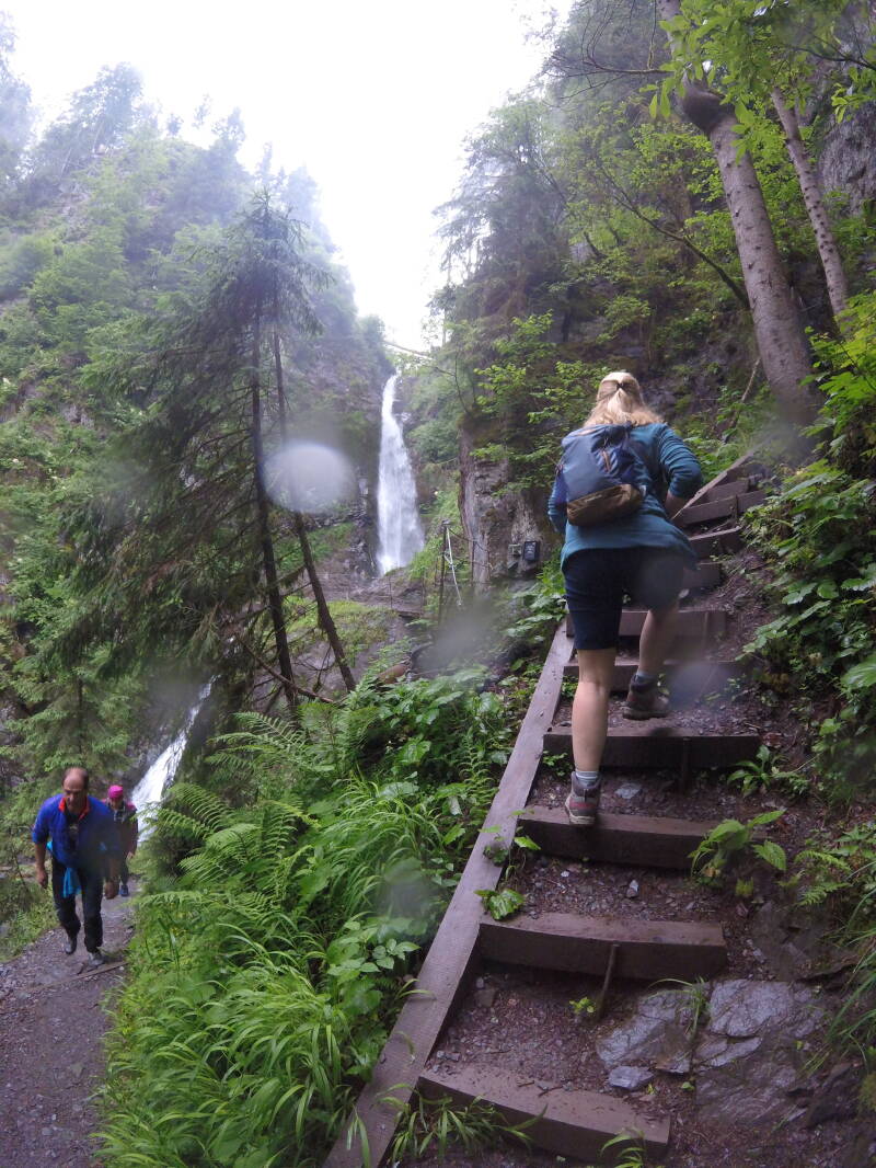 Rond de middag komen we aan in Oostenrijk, en via Kufstein rijden we het 'Wilder Kaiser'-dal door, en komen aan in 'St. Johann in Tirol'. We hebben een kleine wandeling gepland naar de waterval 'Eifersbacher Wasserfall'.