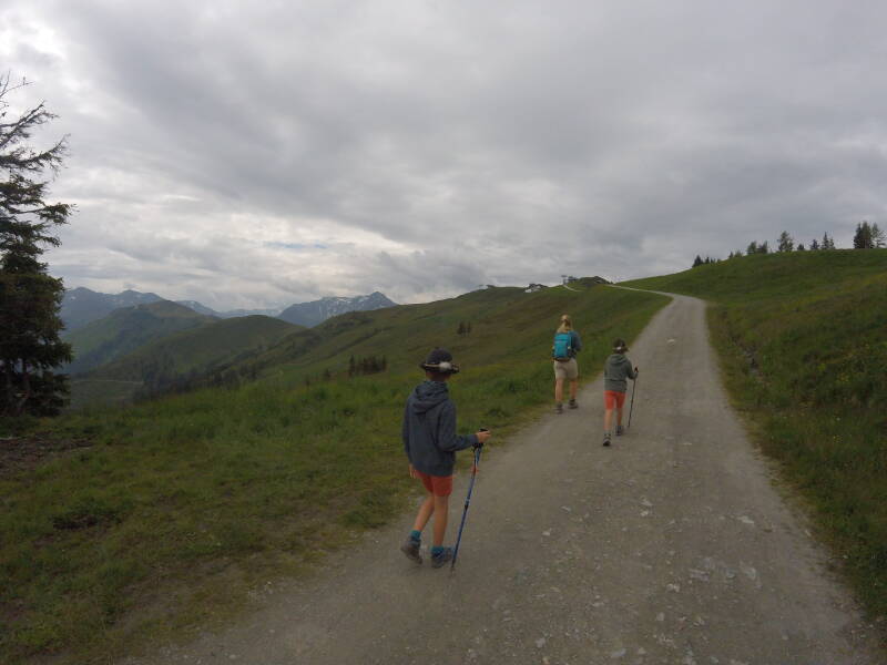 Vandaag geven ze een mindere dag, behalve in Wildschönau. We rijden erheen om er met de kabelbaan 'Schatzbergbahn' omhoog te gaan en er een wandeling te doen.
