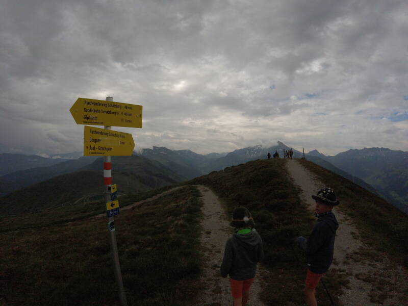 Bij het bergstation aangekomen is het flink bewolkt. We besluiten om een kleine rondwandeling te doen, en om hierbij de 'Joelspitze' mee te nemen voor de stempelkaart van Wildschönau.