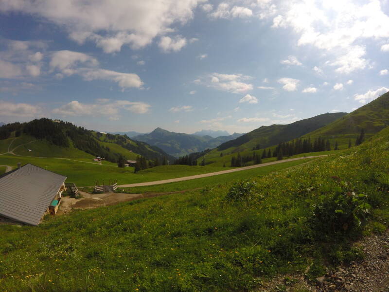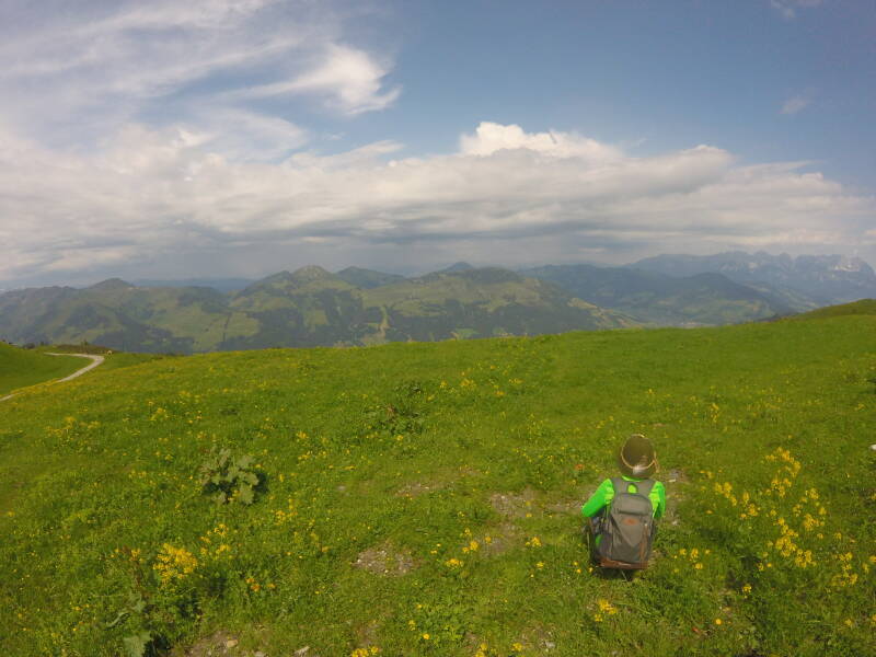 Alsook op de plaats waar we begonnen zijn, namelijk de 'Ehrenbachhöhe' met daarachter 'Wilder Kaiser' en de 'Kitzbuheler Horn'.