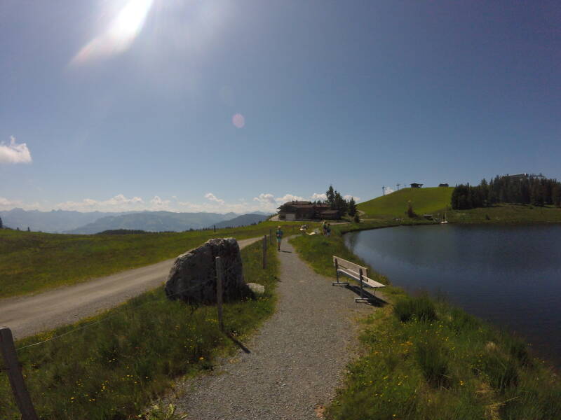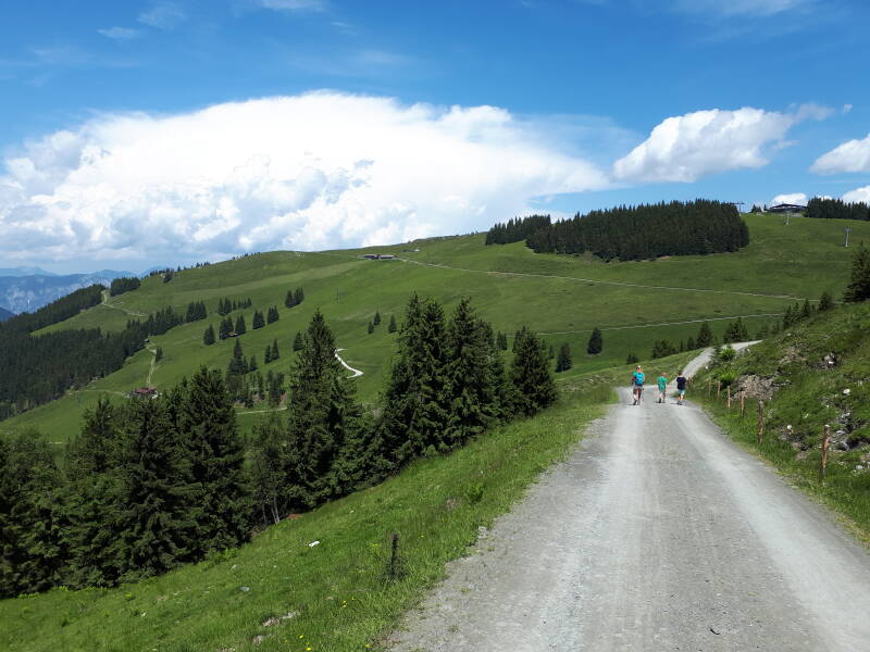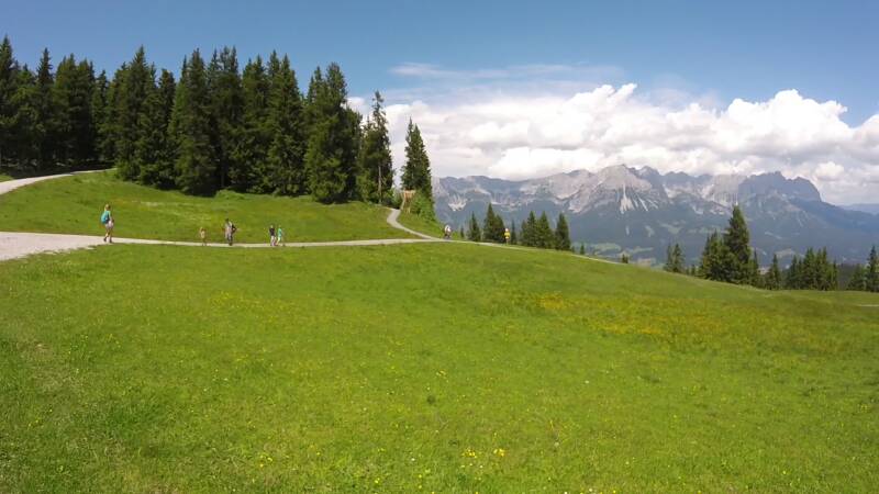 Maar goed, er moet ook nog een beetje gewandeld worden voor de laatste punten van de wandelpas (van de Wilder Kaiser) van Bjorn en Ilona. We lopen via de 'Tanzbodenalm' waarna het dan wat omhoog gaat.