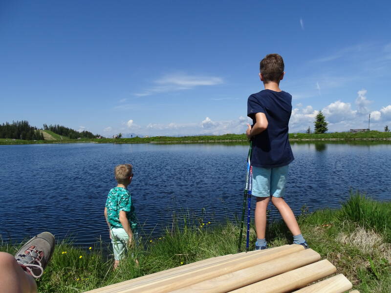 We komen aan bij de 'Jochstubn', waar het echter megadruk is. Het is zondag, en vele lokale bewoners ('Einheimische') komen blijkbaar ook wandelen. Het terras zit volledig vol ... We gaan dan maar naar het nabijgelegen meertje de 'Jochstubn See'.
