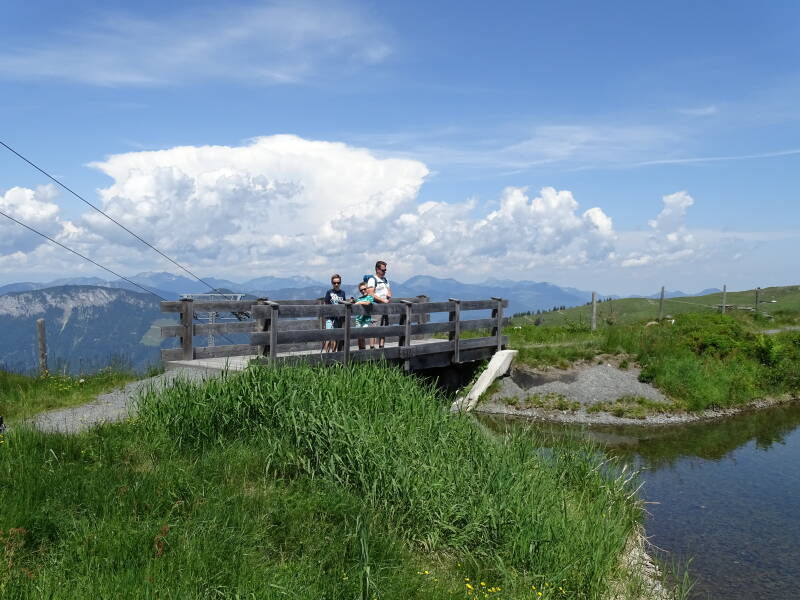 We scoren er onze stempel, en gaan verder naar beneden. Daar krijgen we een mooi uitzicht op de 'Hohe Salve' ...