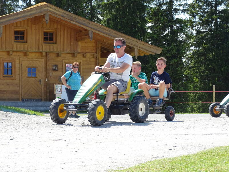 En we komen bij de 'Tanzbodenalm'. Daar kunnen de kinderen hun 'melkskills' oefenen ...