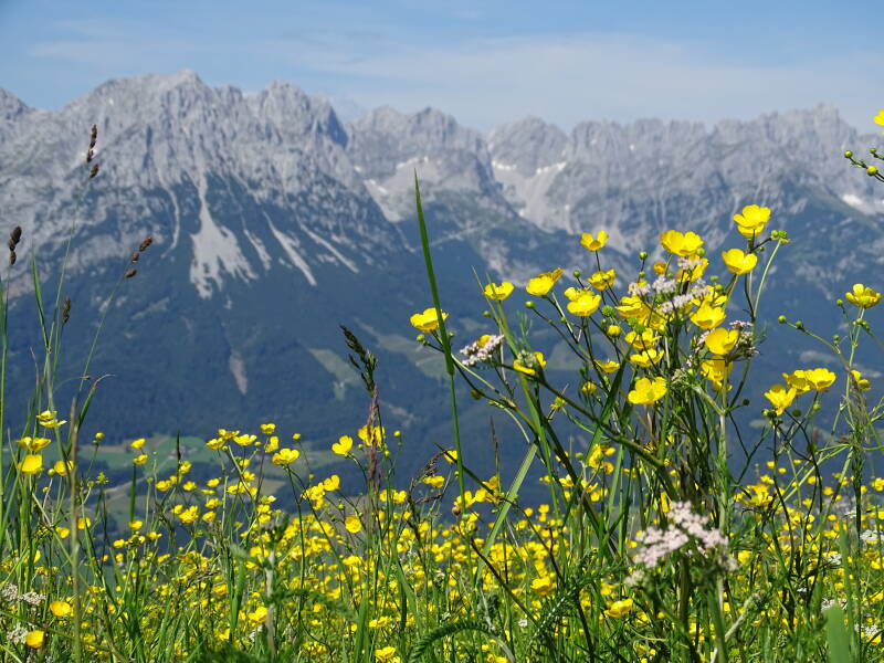 Anders dan twee jaar geleden is het nu prachtig weer. Dit vraagt om mooie foto's met de 'Wilder Kaiser' in de achtergrond ...