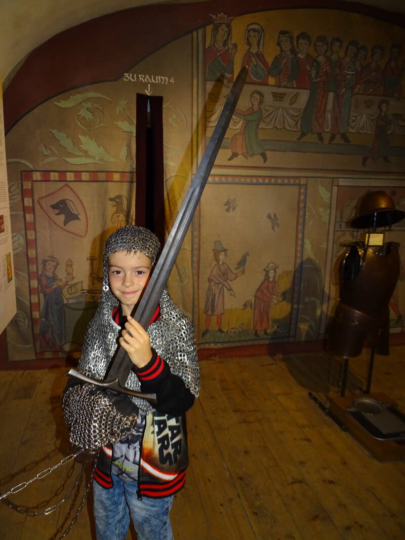 Gelukkig kunnen we eerst het riddermuseum bezoeken. De kinderen kunnen een aantal opdrachten doen voor 'Ridder Rüdiger', met een beloning op het einde. Het museum zit mooi in elkaar, en zowel voor jong als oud is er vanalles te zien en te beleven.