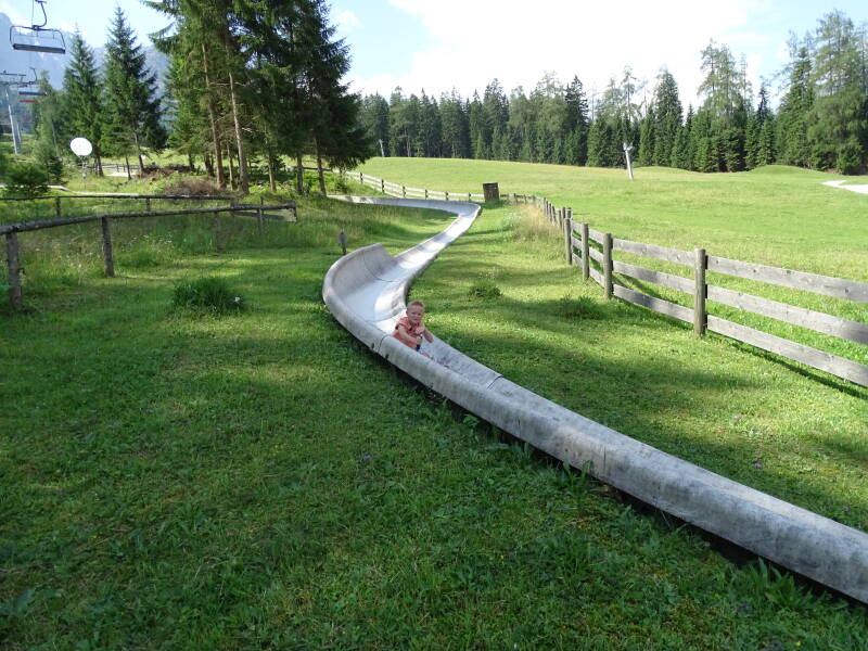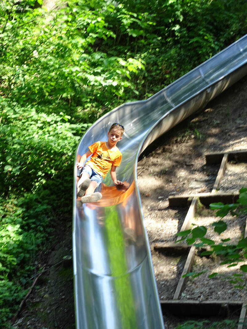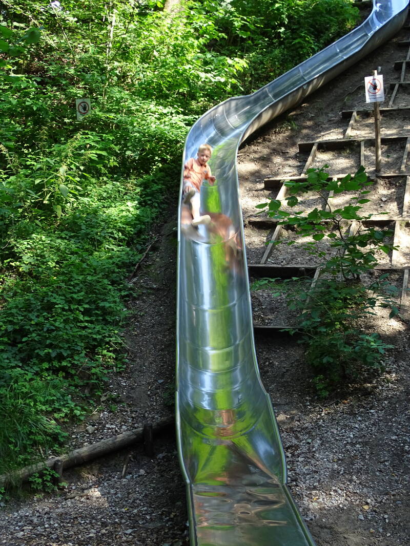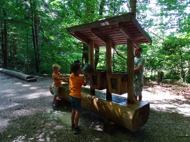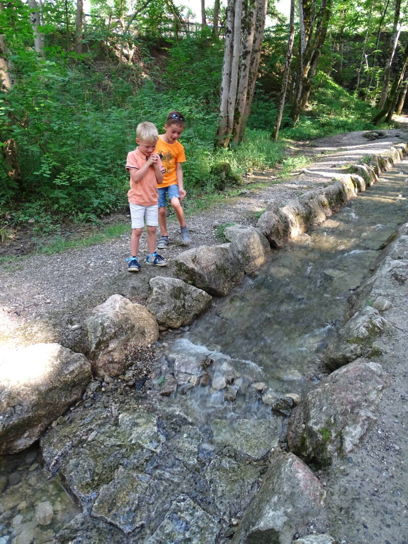 Na het 'Berglehrpfad' gaan we naar het 'Auwaldlehrpfad'. Via een reuzeglijbaan komen we in een bos dat pal naast de rivier de 'Lech' ligt, en dat doorkruist wordt door kleine riviertjes en kleine poelen.
