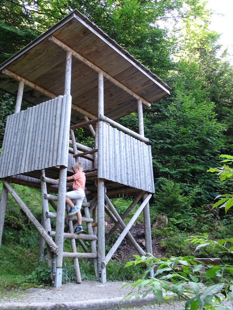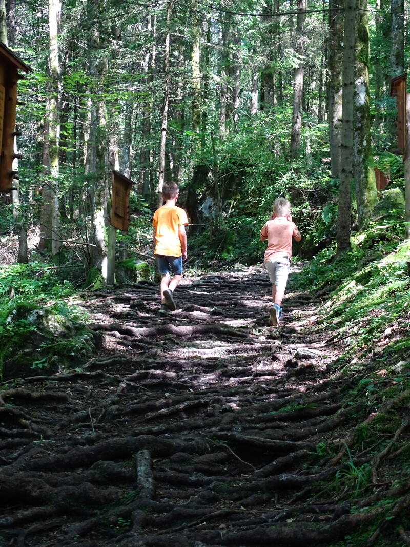 Dit is een soort bosmuseum, met een 'bergwaldpfad' en en 'auwaldpfad'. We beginnen met het bergwandelpad.