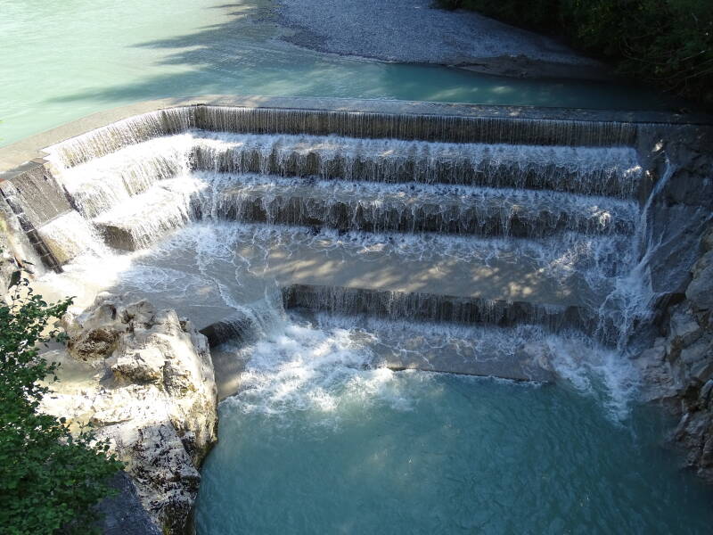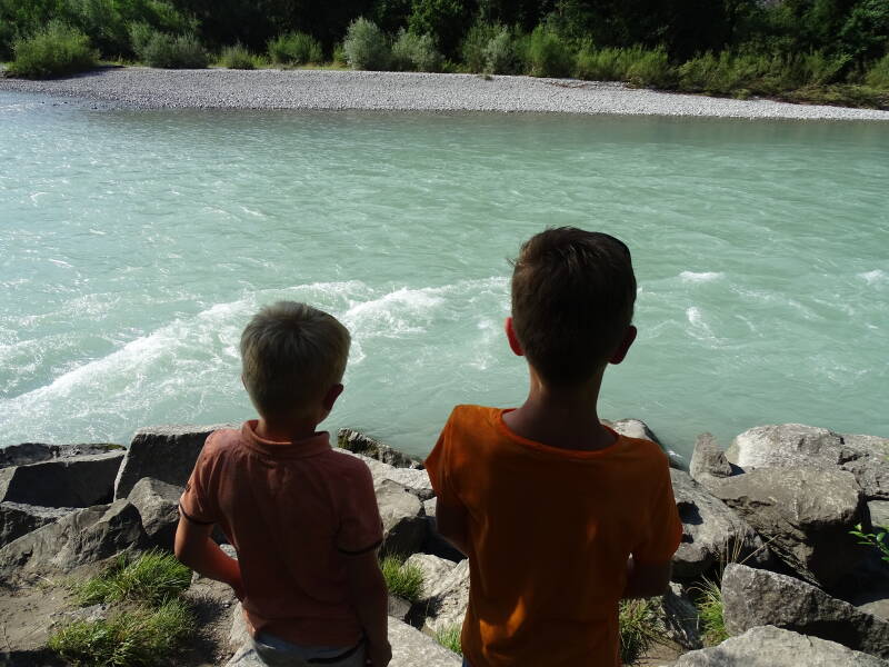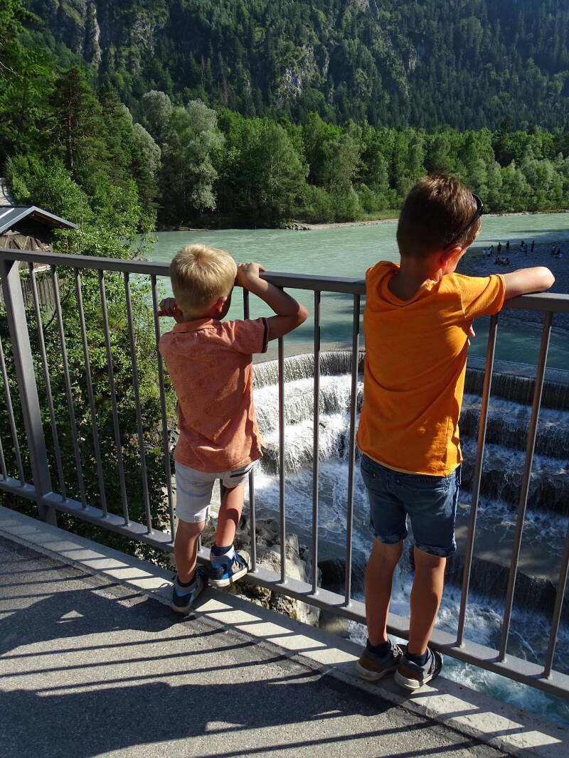 Uiteindelijk komen we ook aan de 'Lechfall', waar de rivier de 'Lech' zich via een nauwe kloof naar beneden stort. Het is er tamelijk diep, en Bjorn bekijkt het van een afstandje … Tristan en Odin echter poseren maar al te graag bij de diepte :)