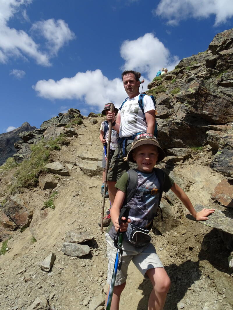 Op YouTube zag die afdaling er 'te doen' uit, maar in het echt is het heel wat akeliger … we moeten langs een smal paadje een rotswand afwandelen … Bjorn bang, Tristan bang … maar voor ons gaan mensen op slippers en sandalen ook naar beneden … dan kunnen wij, echte wandelaars, toch niet achterblijven?