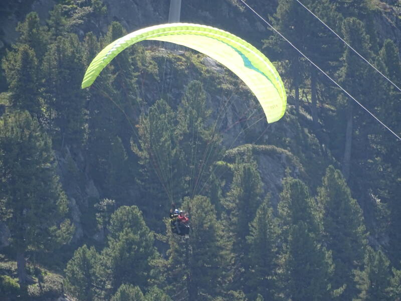 Het is ook mooi weer, en tal van durvers doen er aan paragliding ...