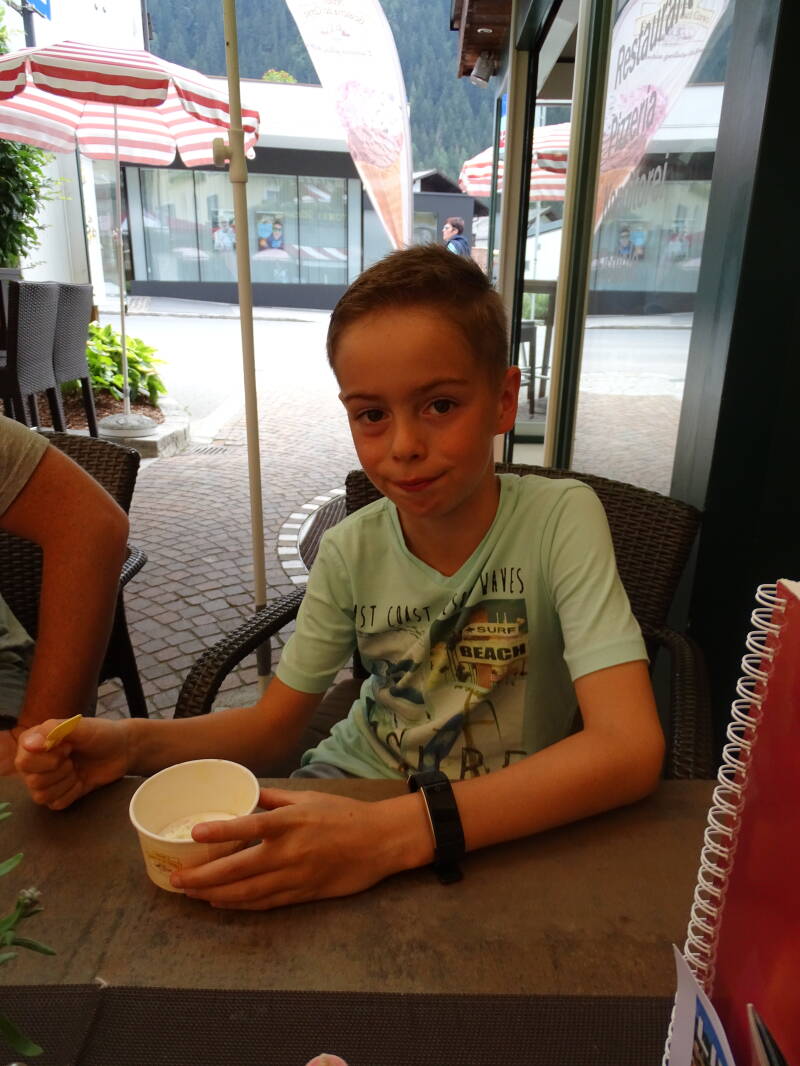 We eten nog een lekker ijsje in het centrum van 'Oetz'.
